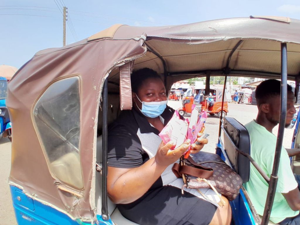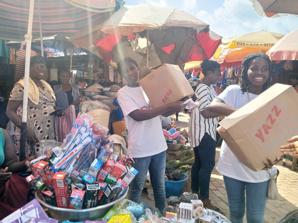 In addition over 2,000 mothers were given sanitary pads on the streets of Ho, the market, and the lorry park.