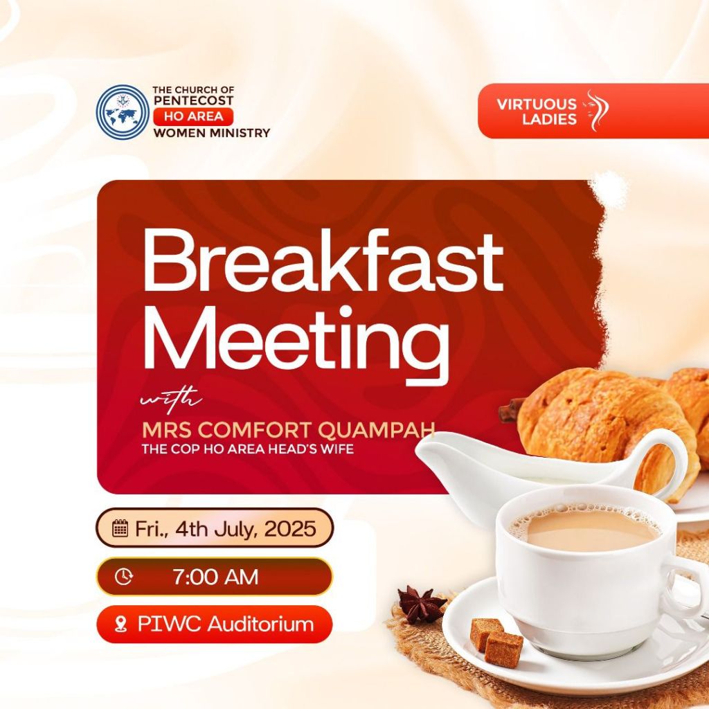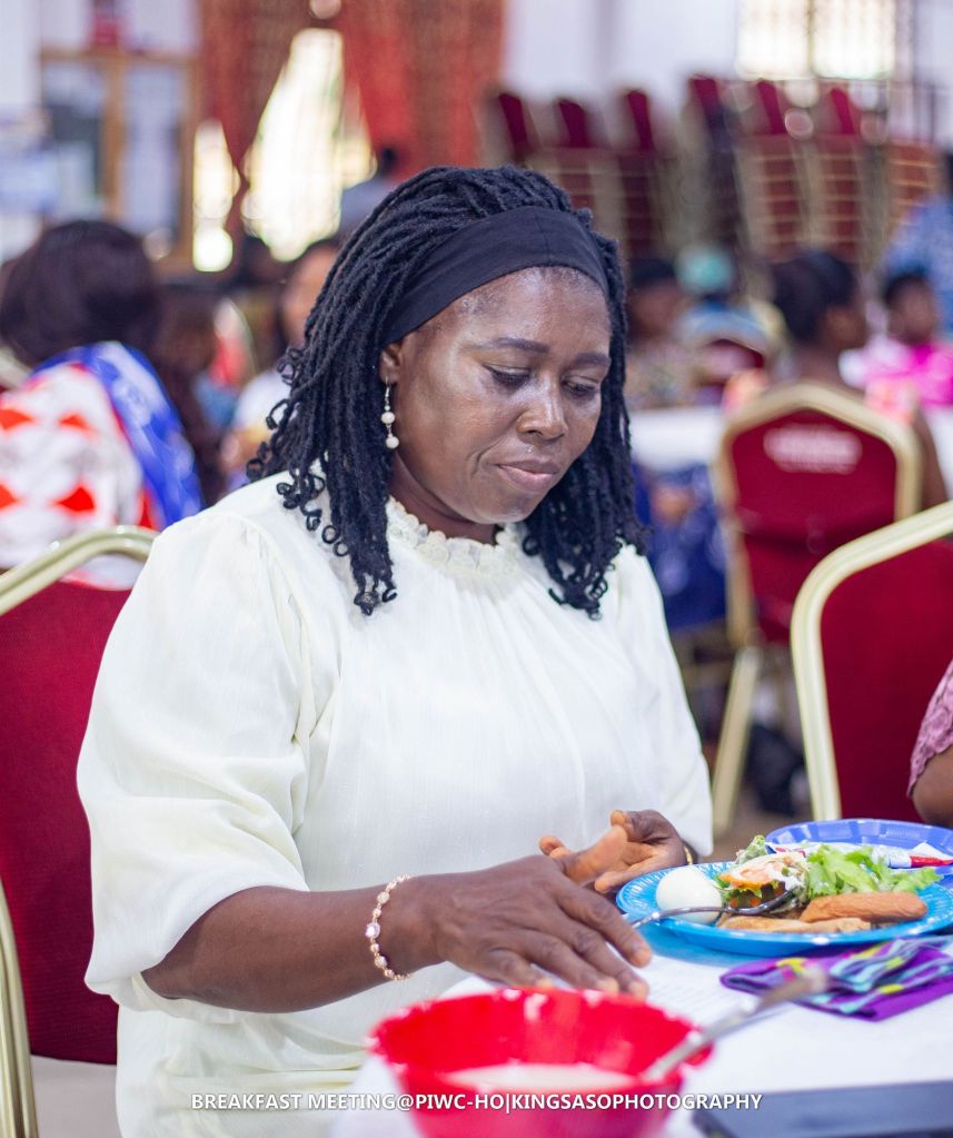 On Friday July 4th 2025, there was a charged atmosphere when the Ho Area Women’s Ministry in collaboration with the Virtuous Ladies gathered to have a Breakfast Meeting with Mrs Comfort Quampah, the wife of the Ho Area Head, at the PIWC-Ho Church Auditorium.
