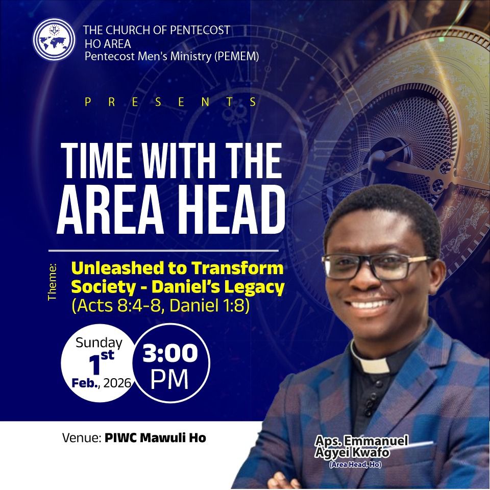 In a meeting of the Pentecost Men’s Ministry(PEMEM) of the Ho Area of The Church of Pentecost, the Area Head, Apostle Emmanuel Agyei Kwafo has had a fruitful discussion, established relationships and shared his vision with the ministry on Sunday, 1st February, 2026 at the church auditorium of PIWC-Ho, Mawuli Estate, Volta Region. The Pastorate and their wives, officers and members were present for the maiden meeting.