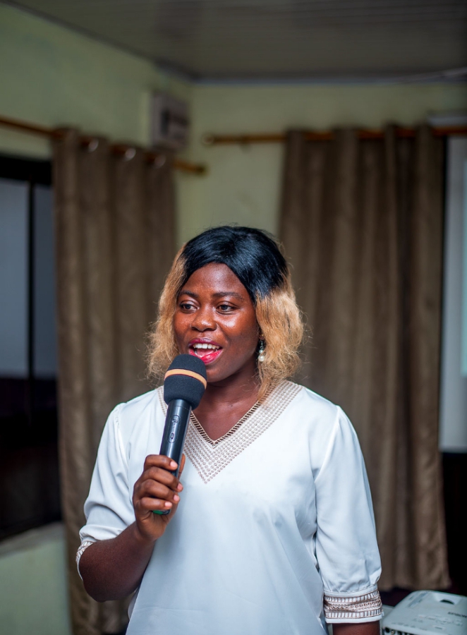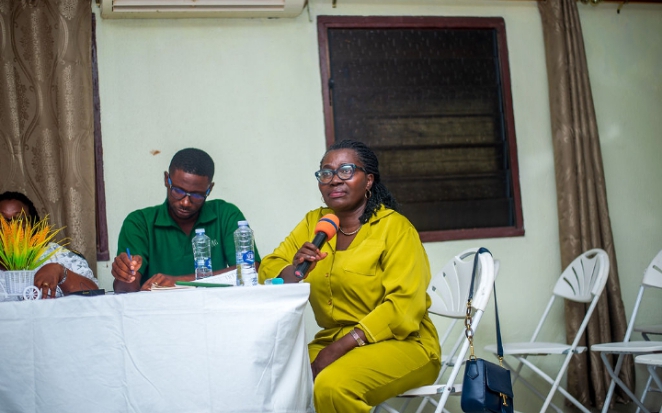 Madam Lois Tipong -Asare making a statement
